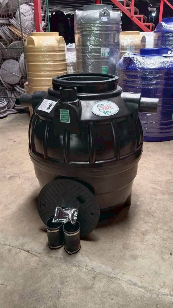 ถังบำบัดน้ำเสียรวมสำเร็จรูป ถังเกรอะ ถังบำบัดน้ำเสียใต้ดิน ถังบำบัดน้ำเสียชนิดเติมอากาศและไม่เติมอากาศ ผลิตจากวัสดุพีอีและไฟเบอร์กลาสสริมแรงใยแก้ว แข็งแรงทนทาน ทนต่อแรงกระแทกได้ดี ไม่รั่วซึม ใช้สำหรับที่พักอาศัย อาคารขนาดใหญ่ และโรงงานอุตสาหกรรม โดยใช้บำบัดน้ำเสียรวมหรือน้ำเสียปฏิกูลจากสุขภัณฑ์ ซึ่งพัฒนามาจากพลาสติกเสริมแรงด้วยใยแก้ว (Fiber Reinforced Plastic; FRP)